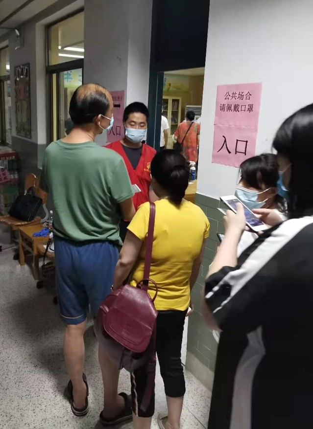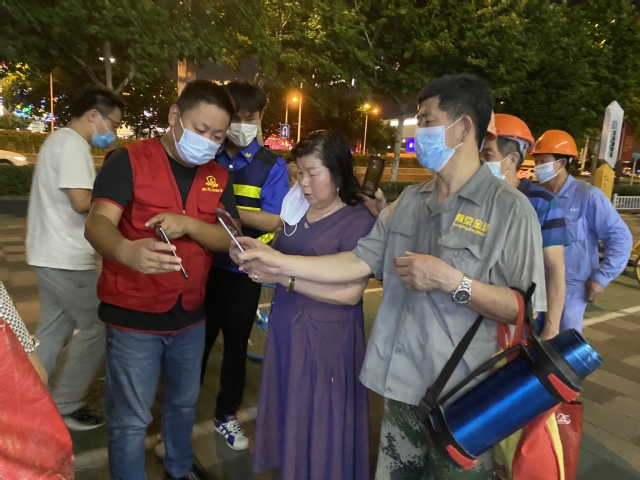 會后,集團(tuán)迅速組織黨員干部組成志愿者隊伍,聯(lián)系建鄴區(qū)認(rèn)領(lǐng)疫情防控志愿工作,趕赴多個社區(qū)協(xié)助防疫一線的核酸檢測工作。集團(tuán)志愿者隊伍每組都由集團(tuán)部室、公司負(fù)責(zé)人帶隊,進(jìn)入工作現(xiàn)場后,他們迅速熟悉掌握工作要求,立即上崗?fù)度胫驹阜?wù)。引導(dǎo)前來進(jìn)行檢測的市民嚴(yán)守疫情防控要求有序排隊進(jìn)場,安撫待檢人員相互配合支持,指導(dǎo)幫助登記掃碼加快工作速度,為老人和困難市民提供方便服務(wù)……在他們與其他志愿者的共同努力下,這幾個檢測點都秩序井然,有效推進(jìn)了檢測速度,減少了市民等待時間。志愿者們把保障核酸檢測有序高效推進(jìn)作為此時踐行初心使命的擔(dān)當(dāng),忘記了炎熱夏夜忙碌的一身汗水,忘記了蚊蟲繞身不停的叮咬,為筑起群眾生命健康防線獻(xiàn)出了一份力量。
