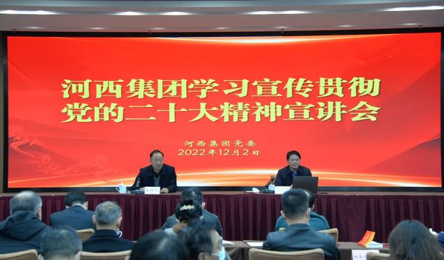 根據(jù)中央和省市委、市國(guó)資委黨委部署要求,12月2日下午,河西集團(tuán)召開學(xué)習(xí)宣傳貫徹黨的二十大精神宣講會(huì),邀請(qǐng)市委宣講團(tuán)成員、市委黨校科研處處長(zhǎng)高信奇教授做專題宣講,進(jìn)一步引導(dǎo)集團(tuán)廣大黨員干部職工全面深入學(xué)習(xí)宣傳貫徹黨的二十大精神,切實(shí)把思想和行動(dòng)統(tǒng)一到黨的二十大精神上來(lái),更加深刻領(lǐng)悟“兩個(gè)確立”的決定性意義,不斷增強(qiáng)“四個(gè)意識(shí)”、堅(jiān)定“四個(gè)自信”、做到“兩個(gè)維護(hù)”。會(huì)議由集團(tuán)黨委副書記、董事繆昌根主持。集團(tuán)領(lǐng)導(dǎo)、全體中層干部及集團(tuán)下屬各公司黨務(wù)工作者參加會(huì)議。