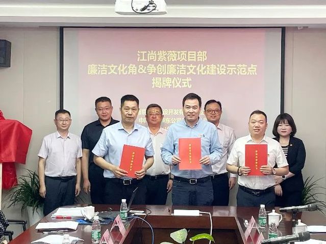 在學(xué)習(xí)貫徹習(xí)近平新時(shí)代中國(guó)特色社會(huì)主義思想主題教育中,為加強(qiáng)清廉教育,引導(dǎo)員工繃緊廉潔自律這根弦,確保工程項(xiàng)目建設(shè)廉潔高效,近日,奧體公司和江山智聯(lián)公司聯(lián)合黨總支(以下簡(jiǎn)稱“聯(lián)合黨總支”)在江尚紫薇項(xiàng)目部創(chuàng)建廉潔文化角。相關(guān)參建單位參加。
