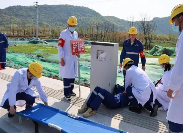 本次演練主要分為事故演練和應(yīng)急處置措施培訓(xùn)兩部分。首先開始的事故演練以一名電工檢修配電箱時(shí)突發(fā)觸電事故為背景。項(xiàng)目部接到事故匯報(bào)后,立即按既定預(yù)案啟動(dòng)事故應(yīng)急處置程序,各應(yīng)急小組迅速到位、協(xié)調(diào)配合,分別承擔(dān)現(xiàn)場警戒、人員應(yīng)急醫(yī)護(hù)救援、后勤物資保障等任務(wù),順利完成了本次演練。在應(yīng)急處置措施培訓(xùn)環(huán)節(jié),項(xiàng)目部邀請了溧水區(qū)永陽鎮(zhèn)社區(qū)醫(yī)院醫(yī)生現(xiàn)場講解、培訓(xùn)了心肺復(fù)蘇、人工呼吸等施工常見事故的緊急處理措施。全部演練結(jié)束后,南京市溧水區(qū)城鄉(xiāng)建設(shè)局質(zhì)量安全監(jiān)督站負(fù)責(zé)人對演練成果及項(xiàng)目部有序有效的組織能力表示了肯定。