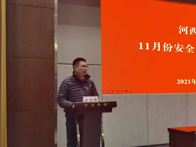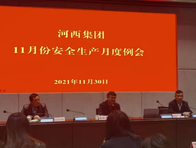 2021年11月30日下午,河西集團召開11月安全生產月度例會。集團副總經理、黨委委員、安委會副主任徐如泉,集團安委辦負責同志、各部門主要負責人和安全聯絡員,下屬公司主要負責人、安全生產負責人、安全生產管理部門負責人和聯絡員參加會議。