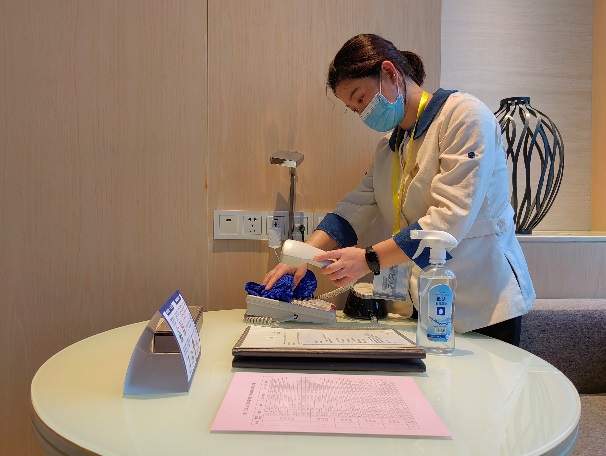各部門嚴(yán)格落實防疫舉措,提前對閉環(huán)區(qū)域的空調(diào)、通風(fēng)系統(tǒng)進(jìn)行全面檢查和清潔消殺,對衛(wèi)生間、電梯間等公共區(qū)域的高頻接觸物體表面進(jìn)行集中消毒,做好檢查記錄。