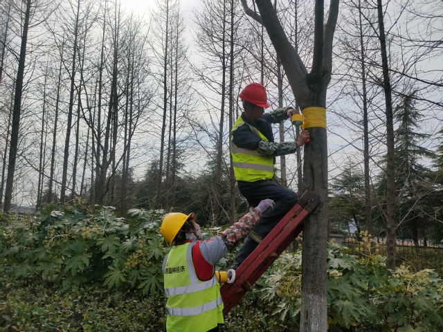 這項(xiàng)舉措不僅可以大大降低綠化養(yǎng)護(hù)成本,并且還不存在農(nóng)藥殘留,不污染環(huán)境。目前公司綠化養(yǎng)護(hù)人員已經(jīng)對嗇園路83株欒樹、蒼山路的20余株紫葉李進(jìn)行了膠帶黏蟲實(shí)驗(yàn),后期公司將持續(xù)進(jìn)行觀察,來檢驗(yàn)其防治效果,為后期開展病蟲害防治提供寶貴的科學(xué)依據(jù)。